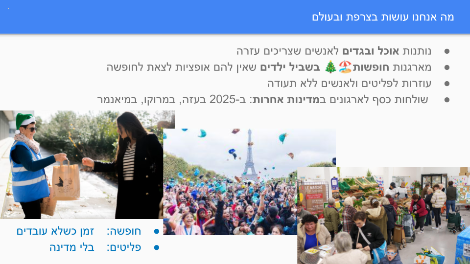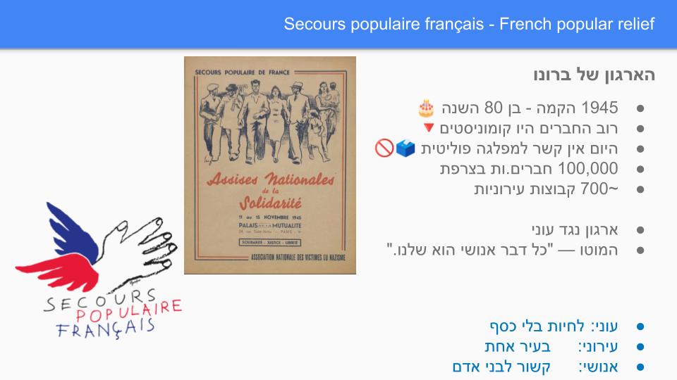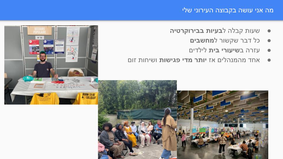 In our “What’s Going On In Israel” course, held during the summer semester of 2025, students prepared presentations about volunteer or activist projects they were a part of. The presentations featured below focus on two organizations - Anarchists Against the Wall and Secours Populaire Français (French Popular Relief) - and describe both the organizations’ activities and the students’ own involvement. Through this work, they practiced their Hebrew while sharing meaningful stories of solidarity, activism, and community engagement.